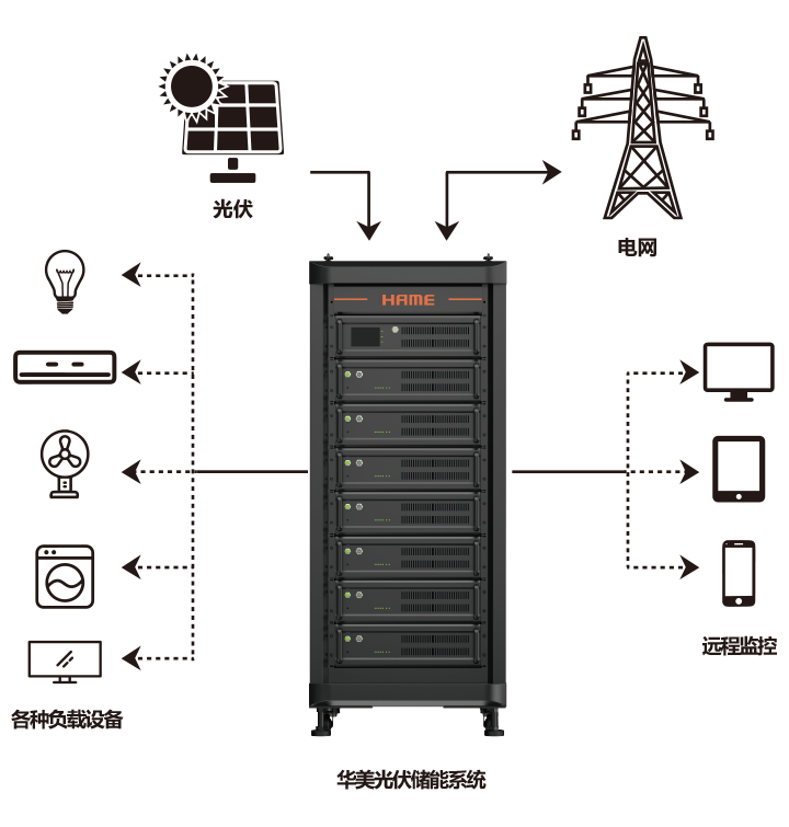 基于磷酸铁理电池,集成电池管理系统(BMS)和逆变系统的新型光伏储能系统,广泛应用于家庭光伏储能、应急救灾电源、数据机房后备电源等。